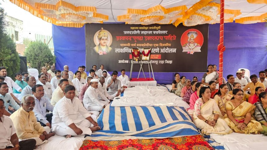 महात्मा बसवेश्वर यांचा अश्वारूढ पुतळा 19 एप्रिलच्या जयंतीपूर्वी उभारण्यात यावा या मागणीसाठी सोलापूर शहर जिल्ह्यातील बसव प्रेमींनी काल एक दिवसाचे लाक्षणिक उपोषण केले.